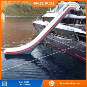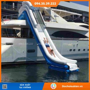 Máng trượt nước bơm hơi là cầu trượt với đường trượt dài từ thành của du thuyền kéo dài đến mặt nước.